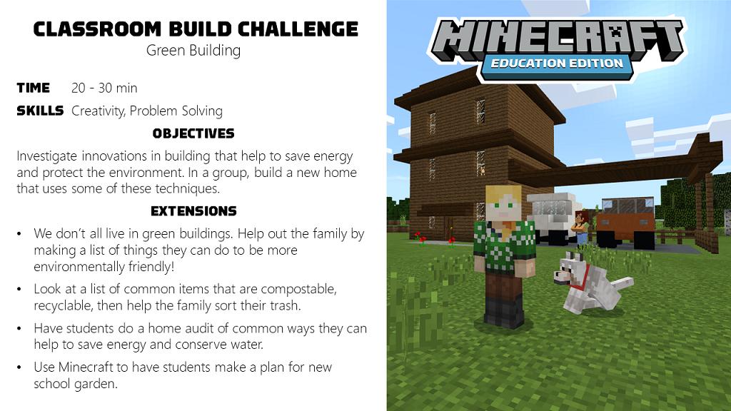 Minecraft Education Builds - Simple minecraft activities to get your students thinking, collaborating, and building.. Announcing the peace with nature challenge, a minecraft global build challenge hosted with unesco. Take your 3d builds from #minecraftedu into other programs! Education edition presents the global build championship! Education edition is encouraging further learning with the global build championship, where students will work together in teams . Students are invited to design new ways of living in harmony .